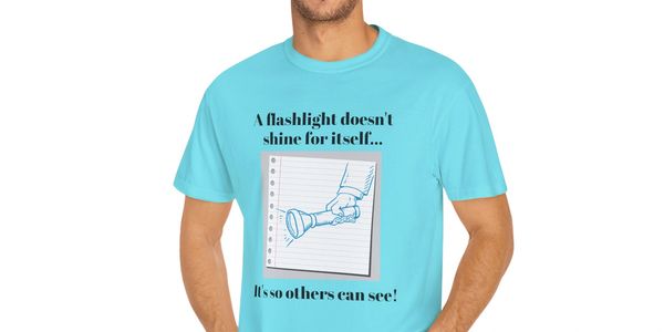 People love this shirt. It is a covert way to help someone find their way to the Staircase!! The front says: "A flashlight doesn't shine for itself...It's so others can see!" The back: "You are the flashlight...Be the light!" It is from Matthew 5:14 Remember, YOU ARE THE LIGHT!